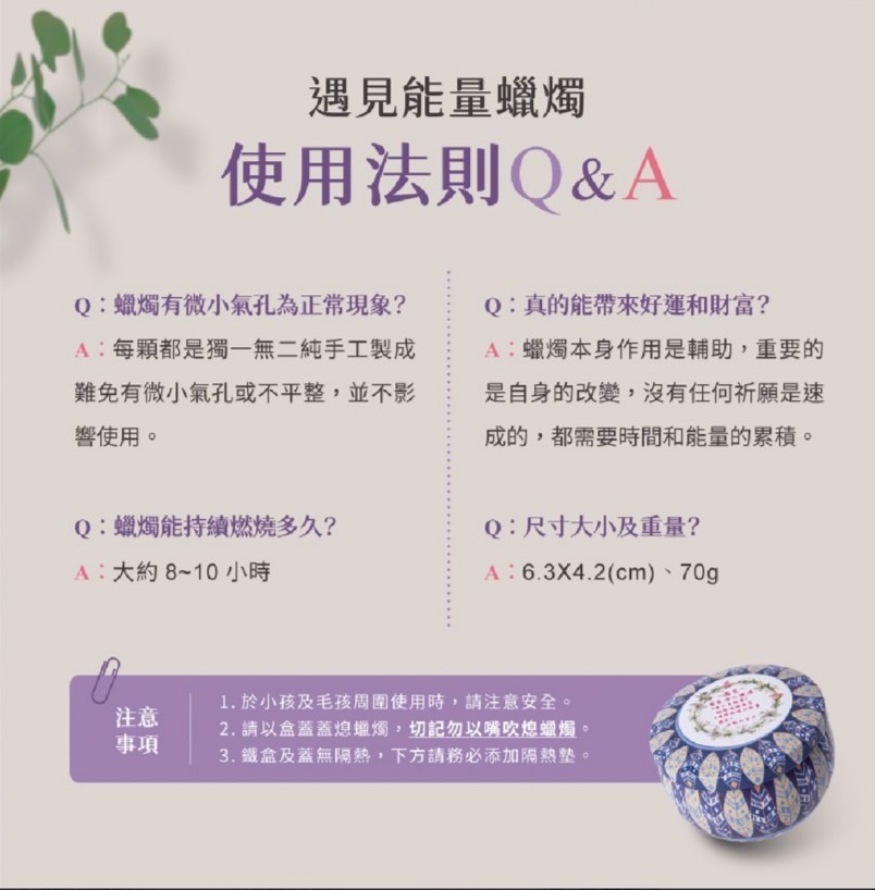 蠟燭是一個火元素,也是一個推動顯化物質的力量,只要誠心發願並真誠相信與感恩,你會發現你人生的劇情慢慢地在轉化中,宇宙最終ㄧ定會送來不期而遇的奇蹟。